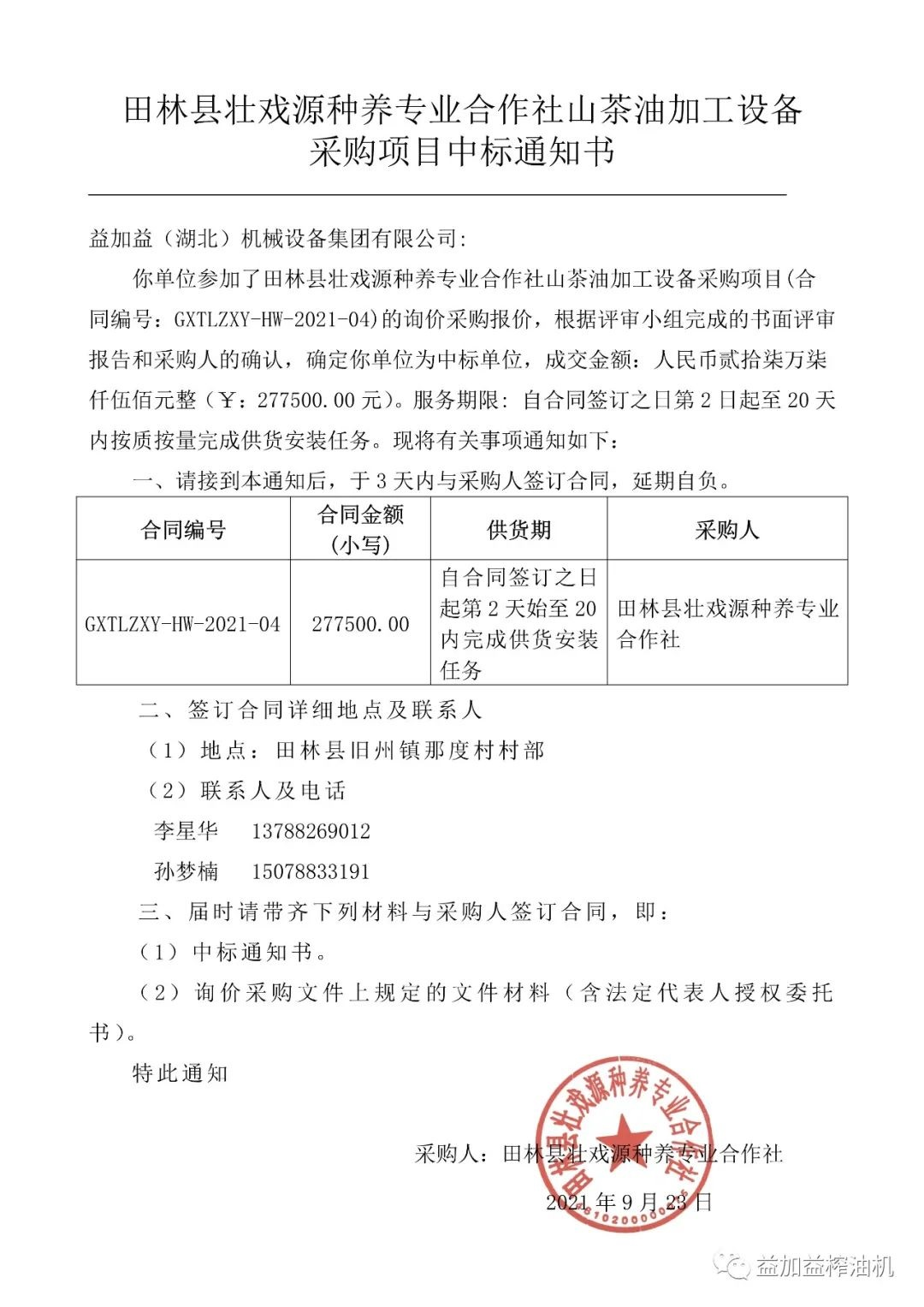 益加益集團(tuán)憑借過硬的產(chǎn)品質(zhì)量,扎實(shí)高效的工作作風(fēng),卓越的運(yùn)作團(tuán)隊(duì)和良好的企業(yè)信譽(yù),在眾多競爭對手中脫穎而出,連續(xù)中標(biāo)《中華人民共和國世界銀行貸款廣西貧困片區(qū)農(nóng)村扶貧試點(diǎn)示范項(xiàng)目》中全部11家專業(yè)合作社山茶油加工設(shè)備的招標(biāo)購置。