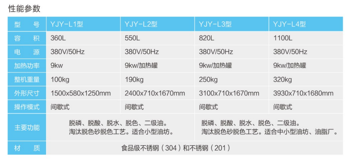 采用不銹鋼材質,可實現油品的脫磷、脫酸、脫水功能,根據用戶需要還可以進行恒溫脫色。